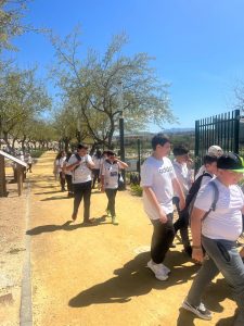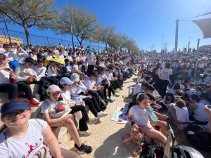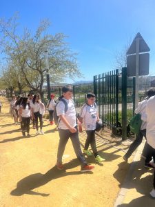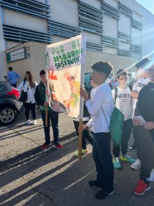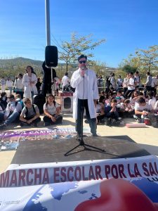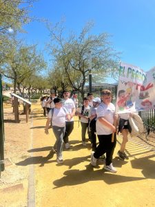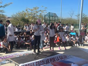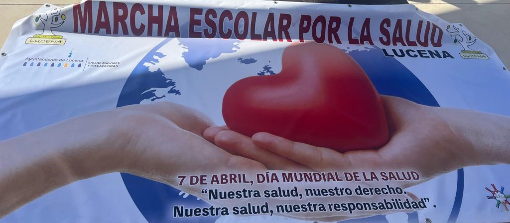07-04-2025. Nuestro alumnado de Sexto se ha convertido en el día de hoy en los «agentes de la Salud» que nos han representado en la II Marcha por la Salud coordinada por el equipo de de enfermeros escolares y la participación de todos los Centros de la localidad. Todos juntos, como una marea blanca, hemos estado entregando pequeñas hojas impresas con mensajes positivos sobre la Salud por toda la ruta hasta la llegada al Paseo de Rojas y de ahí al Parque de Europa, donde se ha leído el Manifiesto del Día Mundial de la Salud (07 de abril) a cargo de los enfermeros y enfermeras y nuestro alumnado del colegio ha leído mensajes saludables en torno a «responsabilidad ecosocial y desarrollo sostenible», además de llevar carteles y pancartas con los hábitos saludables trabajados en nuestro centro en los meses del segundo trimestre.