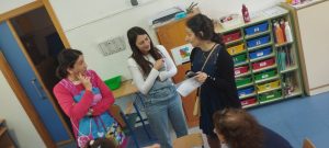 Una es profesora de Filosofía y la otra profesora es de Pedagogía Terapéutica. Han sido recibidas por profesorado del equipo de orientación de nuestro colegio, PT y del Aula Específica.