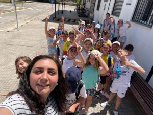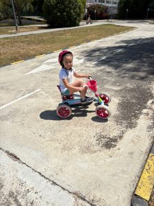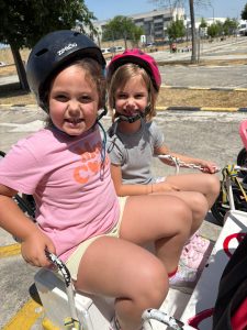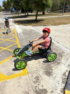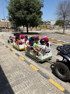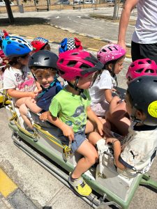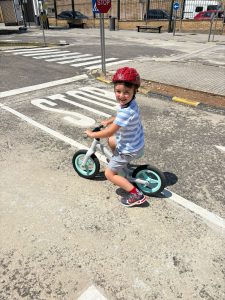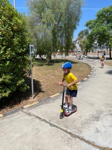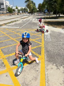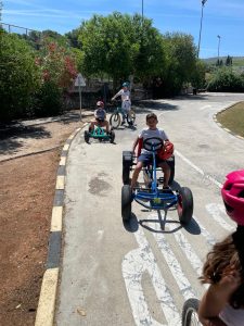 Además de aprender normas de tráfico a través de juegos cooperativos y en equipo, tenemos una sesión práctica con los patinetes, coches… circulando por la pista y poniendo en práctica todo lo aprendido. ¡Y se lo pasan genial!