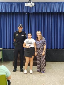 Os dejamos las imágenes del día de la entrega de los carnets donde hicieron entrega de los mismos. El acto contó con la Sra. Directora Dña. Mª José Lara y representantes de la Comisaría de Lucena. Los agentes que nos acompañaron en el acto de entrega de los carnets del proyecto Ciberexperto han sido: el Inspetor- Jefe de la Brigada Local de Seguridad Ciudadana D. Julián Alonso Ballesteros y la policía, adscrita a la Brigada Local de Seguridad Ciudadana Dª Marisol Pardo Pérez.