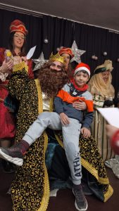 Comenzó la mañana con ricos desayunos en clase que las familias habían traído y compartido con nosotr@s, mientras llegaban nuestros Reyes Magos al Prado. Jugamos al Amig@ Invisible, cantamos en clase alegres villancicos, hicimos balance de nuestro trabajo en clase y fue todo diferente y repleto de la emoción del último día de este trimestre en El Prado.