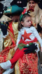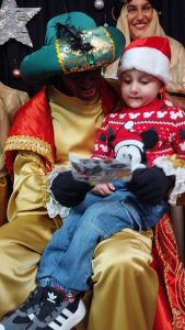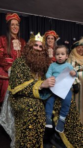 Nuestros Reyes Magos y un singular personaje: Papá Noel (conducidos por sus Ayudantes de nuestra AMPA y colaborador@s), hacían una parada en El Prado y recibían a todo el alumnado y profesorado del colegio con entusiasmo, recogiendo una por una, las cartas dirigidas a Oriente.