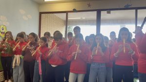 Finalmente, el viernes, día 5, el alumnado de Sexto ha interpretado el Himno de España a flauta, coordinado por Inmaculada Jiménez, para conmemorar el 47 Aniversario de nuestra Carta Magna, esta vez, en el interior del salón Infantil y distintos espacios del edificio de Primaria, debido a la lluvia.