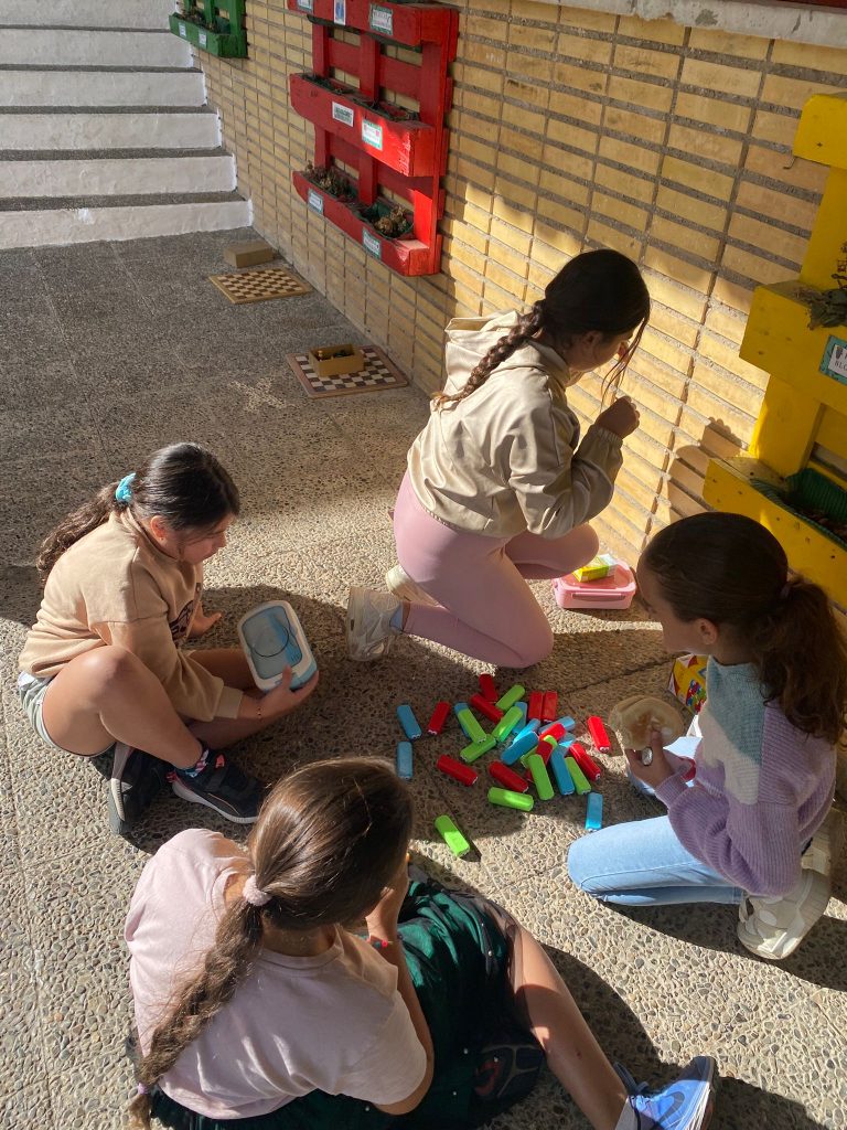 Este curso, en el mes de octubre, el alumnado tanto de Infantil como de Primaria ha comenzado a disfrutar de nuestros recreos alternativos. De esta forma, cada día de la semana, un curso será el protagonista del recreo, en el que podrán jugar a distintos juegos tanto populares, como el balón prisionero, la pelota sentada, retos con combas, etc., como de conocidos juegos de mesa como el ajedrez, el parchís, jenka, mikado, etc. Estos juegos irán cambiando cada mes de curso y los principales objetivos son conocer el mayor número de juegos posibles, fomentar el trabajo en equipo, la cooperación entre iguales…