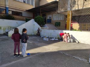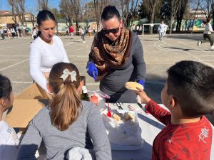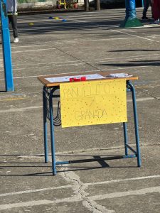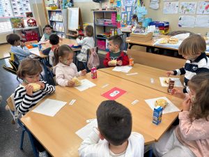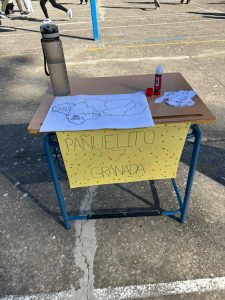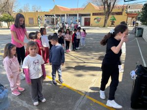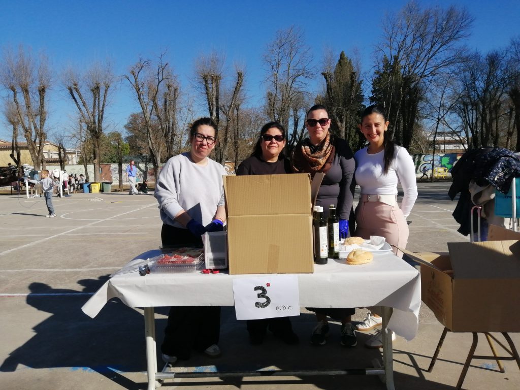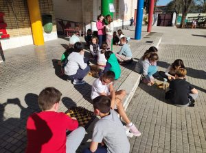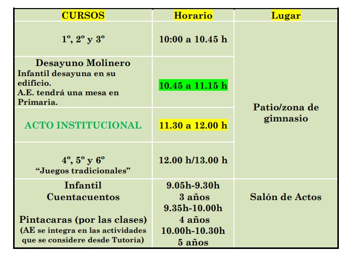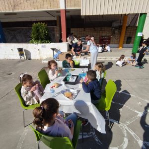 Con la colaboración de madres y padres del colegio, todas las mesas quedan dispuestas a las 10:45 de la mañana, en los patios de Primaria y en Infantil para los cursos más pequeñ@s que lo han degustado en sus aulas.