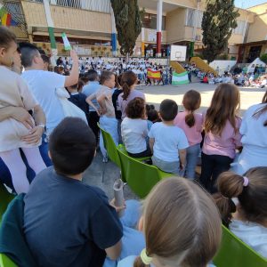 El Acto transcurrió a media mañana en el patio central del colegio. Y dentro del Acto, como actividad principal ha sido el Homenaje a nuestros símbolos.