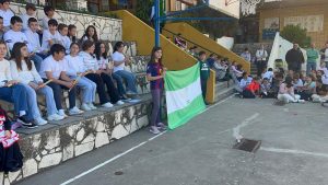 En primer lugar y tras las palabras institucionales por parte de la Directora, recordando por qué es importante esta celebración de nuestra Comunidad, se escucharon los Himnos de Andalucía y España bajo las banderas que portaron alumnos/as de Sexto.