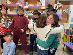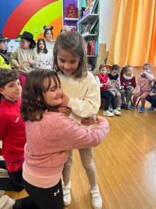 El abrazo de alegría de un niño de 6 años que recibe de otro compañero/a, a veces, de un hermano, de un amigo, el carnet de la Biblioteca, es una imagen maravillosa y que resume la alegría de estos niñ@s cuando entran a nuestra Biblioteca por primera vez y de este día del abrazo.