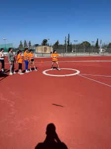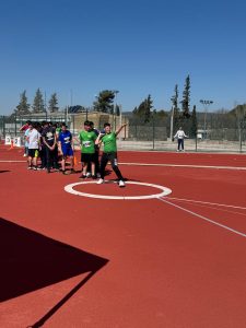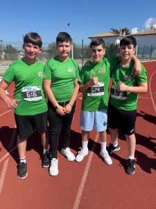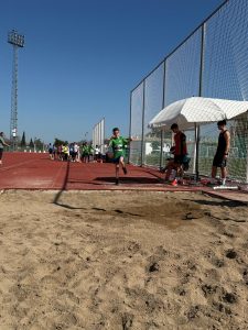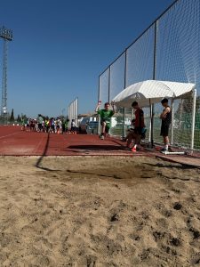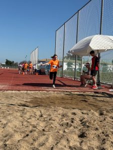 Treinta y dos alumnos/as participaban en estas Olimpiadas que eran ya, previamente, seleccionados/as por su buen resultado en nuestro colegio en las distintas categorías: lanzamiento de peso, longitud, velocidad, relevos 4 x 80, fondo y altura y fondo.