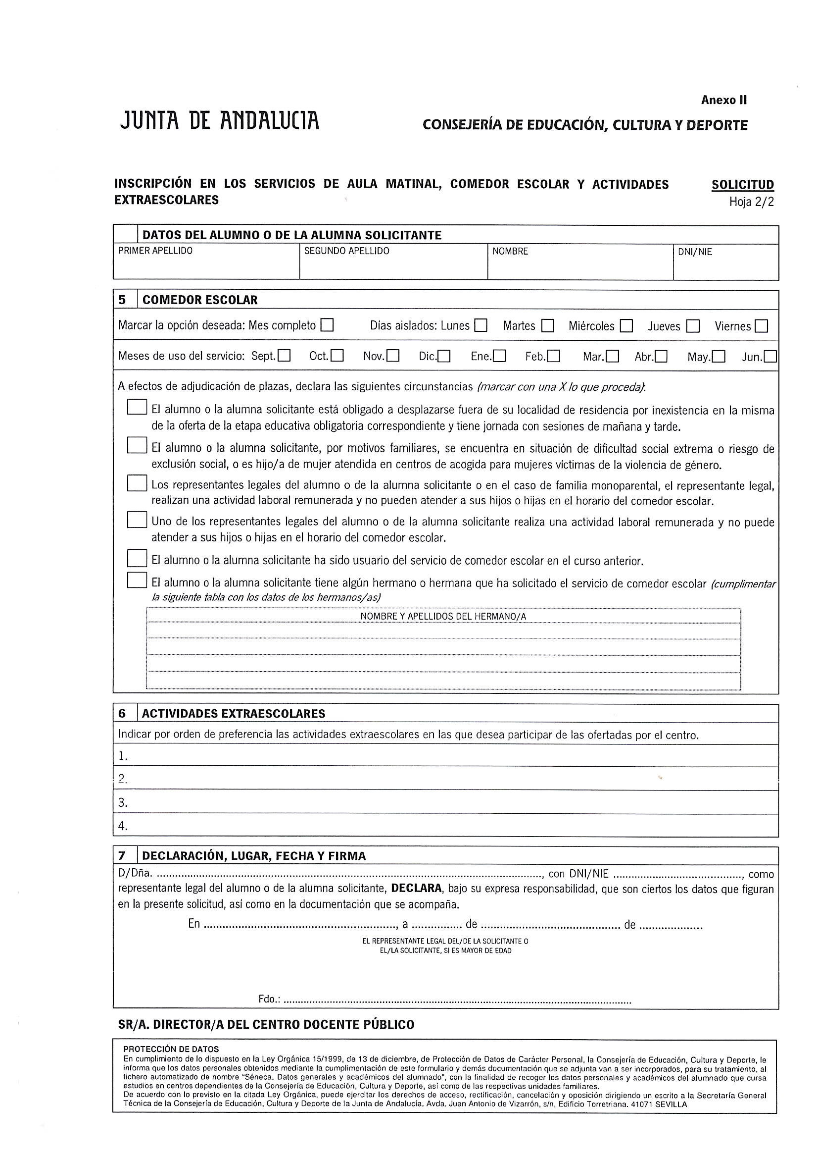 Se recuerda que el plazo para solicitar plaza de comedor en este Centro se abre del 1 al 8 de junio, así como el de solicitud de beca para el mismo. Los dos Anexos se encuentran ya a disposición del usuario en Secretaría.