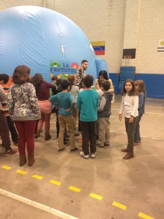 Este día contamos con la información que nos ofrece el centro de interpretación de Frutas y Hortalizas móvil e itinerante que ha posibilitado que los niños se conciencien del consumo de frutas y hortalizas a través de una carpa hinchable donde los niños entran y viven experiencias únicas con vídeos en 3d .