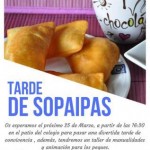 El AMPA informa que el próximo 25 de marzo, lunes, a partir de las 16:30 horas habrá chocolate, café y sopaipas a 1 euro. Además de pasar una buena tarde de convivencia tendremos animación y un taller de manualidades para los pequeños. Así que, ¡animaros, que todo es por el bien de nuestro colegio!