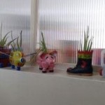 Ahora veréis los resultados del proceso y tras la plantación y colocación en sitios visibles del centro. Para eso somos Ecoescuela… De cualquier objeto se puede sacar otro nuevo y, si cabe, más bonito y útil.