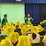 Hemos celebrado el Día del Abrazo en el 14-F y hemos formado un gran corazón solidario amarillo con nuestros pañuelos para ayudar a la investigación del cáncer infantil.